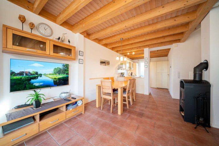 Das exklusive Ferienhaus liegt an der äußersten Nordost-Spitze des Nordseeheilbades Horumersiel-Schillig und ist in nachhaltiger, ressourcenschonender schwedischer Holzbauweise nach skandinavischem Vorbild errichtet. Ein „must have“ für naturverbundene Nordseeurlauber. Es ist auf 102 qm sehr großzügig, hell und familienfreundlich eingerichtet. Das Haus bietet mit 5 Räumen, Terrasse und Balkon mit Meerblick viel Raum für die ganze Familie und ist zudem für Allergiker geeignet. Zur gemütlichen Erholung und Entspannung laden der Kaminofen im Wohnzimmer, die Whirlbadewanne und die hauseigene Sauna ein.